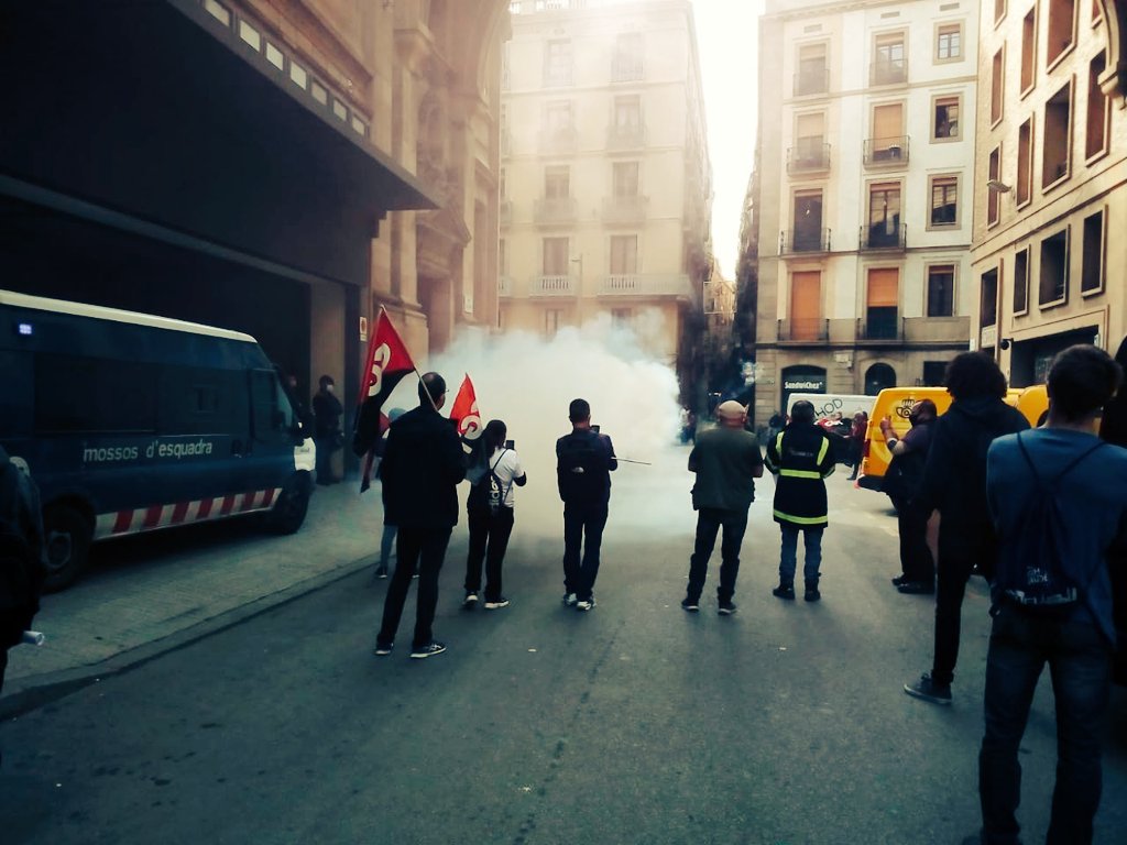 Ante este abuso y también el que han sufrido otros compañeros sancionados, desde CGT como organización combativa hicimos un llamamiento a la solidaridad y en protesta contra la represión sindical en Correos. Este jueves 12 de noviembre se realizaron concentraciones ante las sedes principales de Correos en Madrid, Santiago de Compostela y Barcelona, a esta última acudieron compañeras de Girona, Valencia, Málaga y de distintas localidades de la provincia, al grito unánime de SI NOS TOCAN A UNA; NOS TOCAN A TODAS.