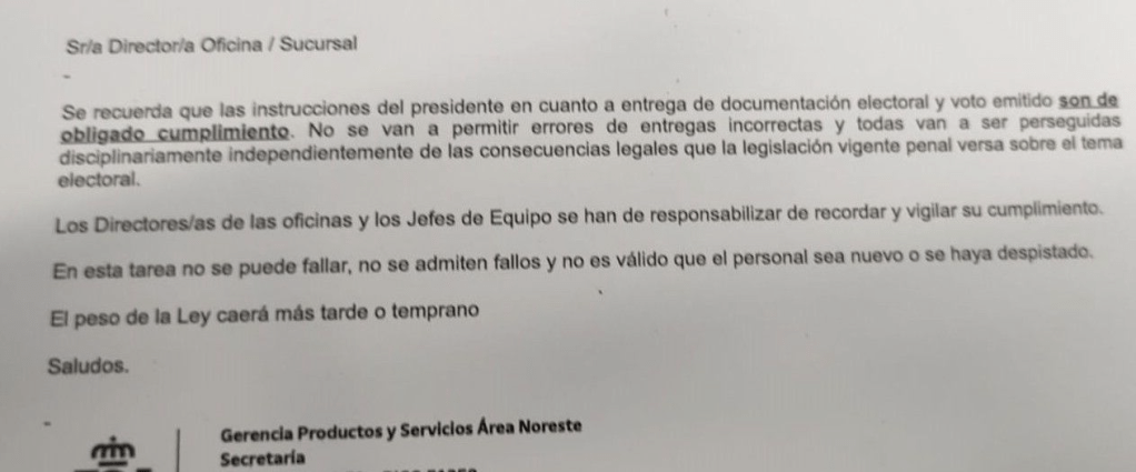 documentación electoral y voto por correo; instrucciones con un tono totalmente inaceptable,